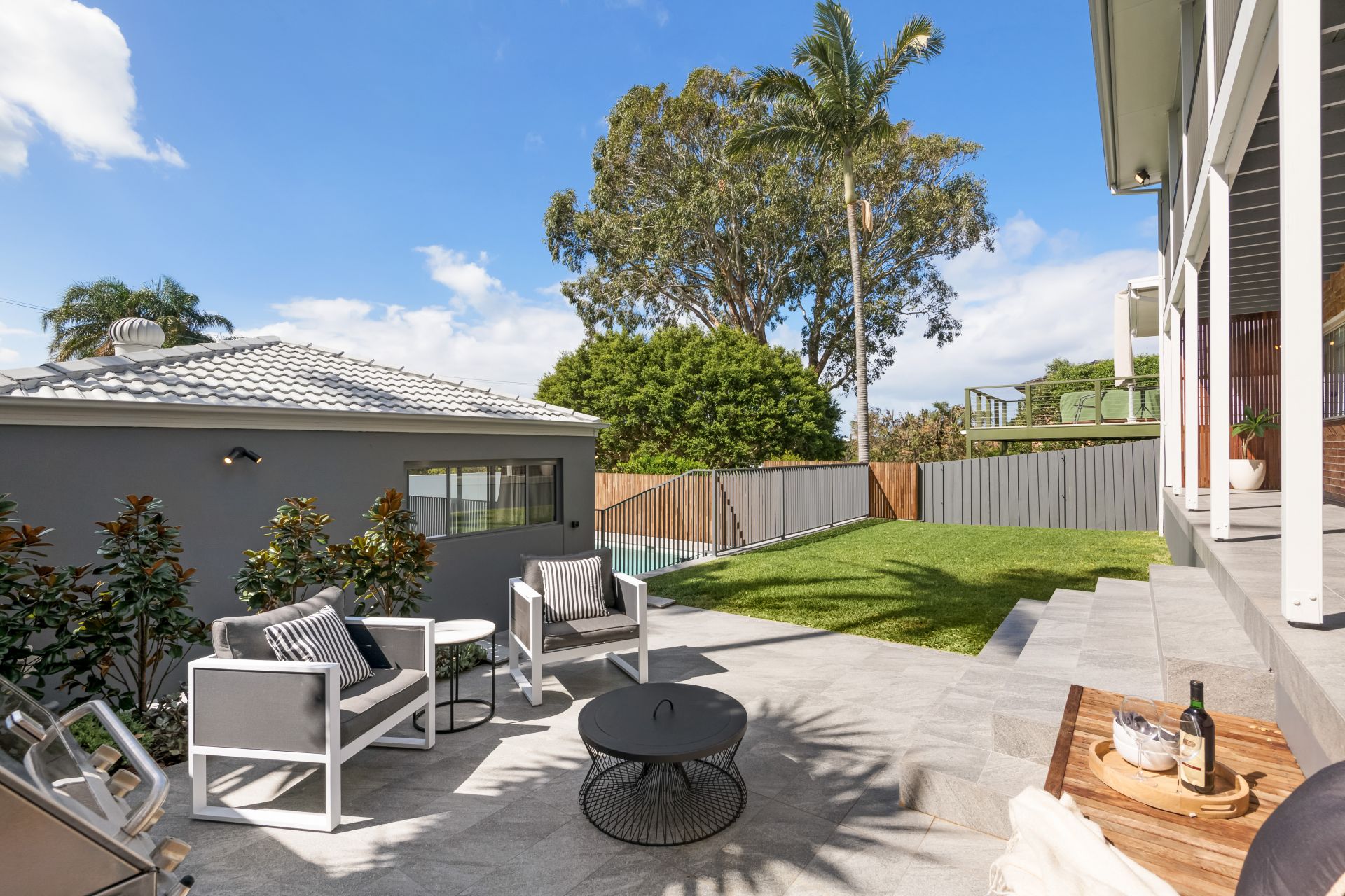 Outside is where you are truly spoilt with a self-contained studio offering bedroom, lounge, bathroom and kitchen – all with its own private rear lane access. Under covered vergola opening out to mineral pool with water jets (heat ready), outdoor shower with hot & cold, enclosed rear yard with BBQ area, completely private rear yard allows for seamless enjoyment year round.