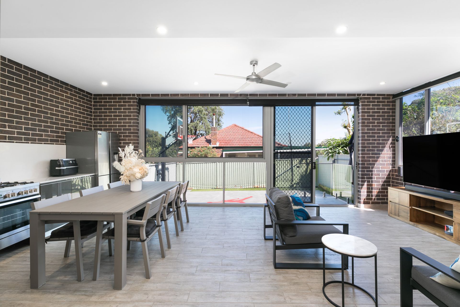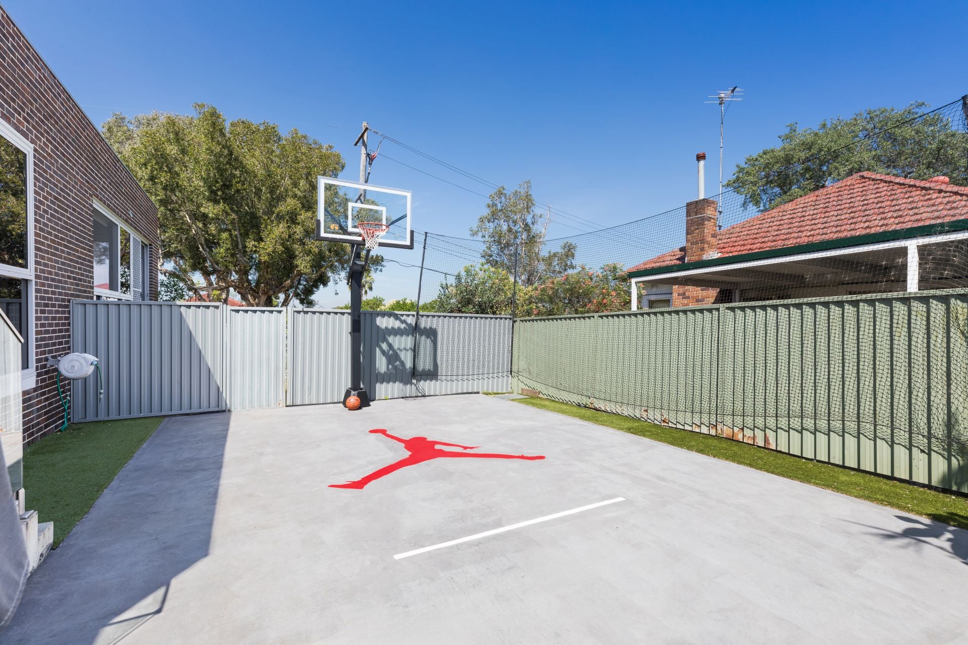 * Enclosed rear yard with basketball court