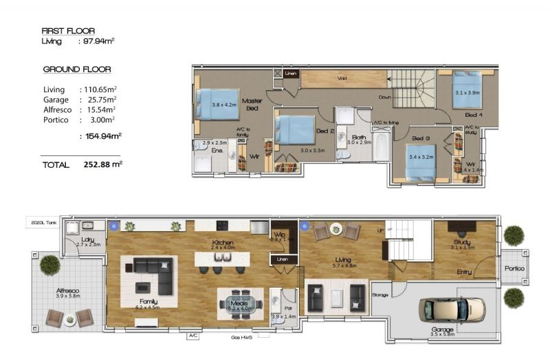 * 4 double sized bedrooms + study nook